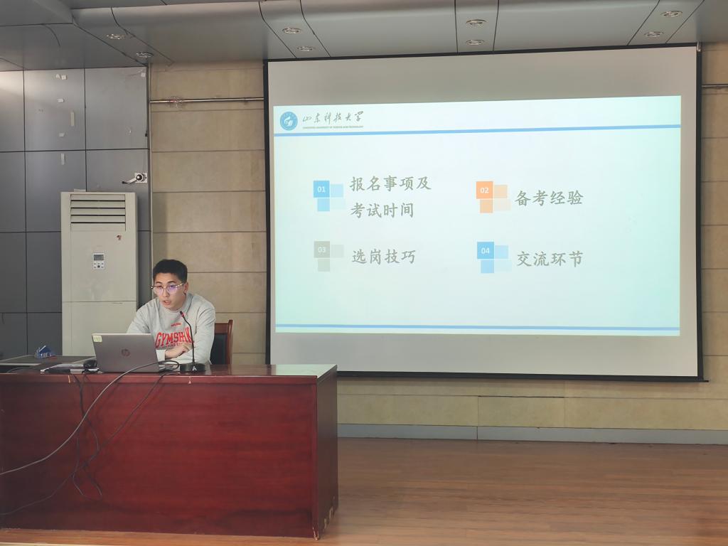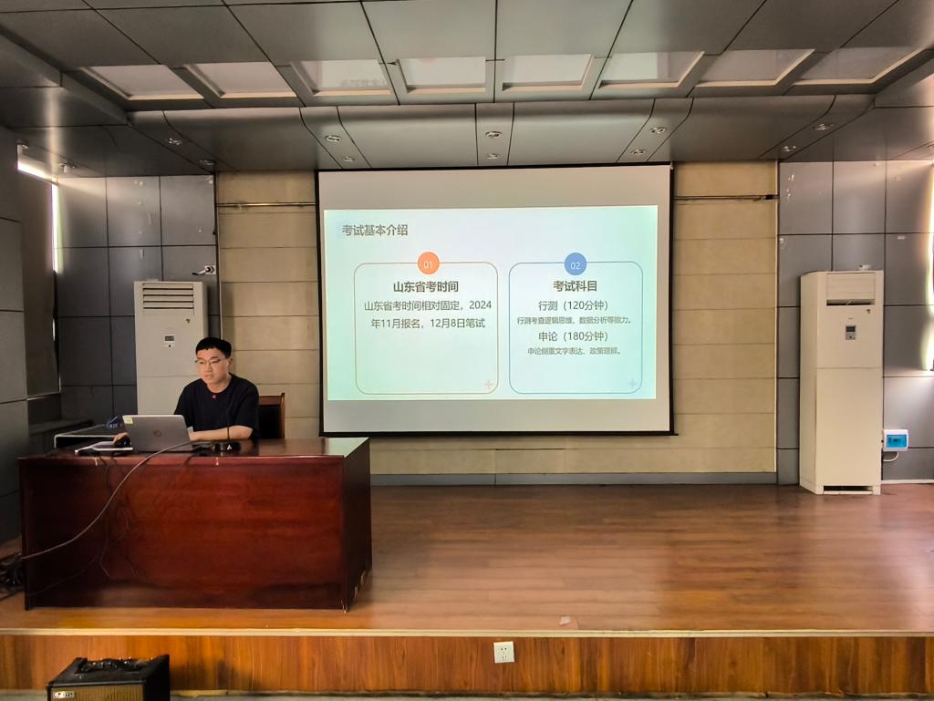 为助力学生精准把握山东省及全国体制内岗位的报考要点,系统了解公考政策形势,科学制定备考方案,4月29日,beat365在线唯一官网于J15-219教室举办“砼心筑梦·就业领航”系列活动讲座。本次讲座特邀beat365官网已在山东省省考中上岸的2022级研究生黄明、侯宗汛同学担任主讲。讲座聚焦省考笔试“行测+申论”双科提分技巧与面试核心能力培养,并针对省考报考政策进行了系统解读。