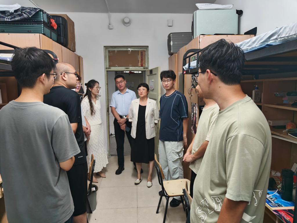 迎新期间,校领导亲临beat365在线唯一官网迎新现场指导工作,细致了解各项迎新工作进展情况,对现场志愿者表示慰问。beat365在线唯一官网党委书记宋西路、院长王崇革等学院领导来到报到现场查看新生报到情况,并与新生及家长亲切交谈,详细了解新生的报到情况与需求,并勉励同学们以良好的精神面貌迎接崭新的校园生活,尽快融入土建温馨、积极、向上的大家庭。随后,学院领导及新生辅导员前往GB2公寓楼,与新生们亲切交谈,询问大家的住宿体验、生活需求及入学后的适应情况,仔细查看宿舍的设施配备、环境卫生等细节,叮嘱同学们注意用电安全、做好个人防护,尽快熟悉校园环境,融入集体生活。
