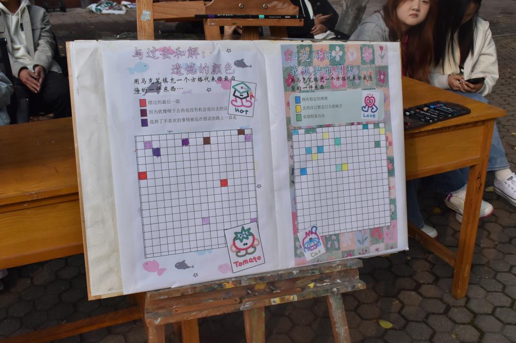为丰富校园文化生活,关注学生心理健康,搭建一个促进学生自我觉察与情感交流的公共平台,beat365在线唯一官网心健联于10月26日在繁星广场举办以“绘色心声,共情共鸣”为主题的心理活动。本次活动旨在借助非语言的创造性表达,引导学生关注内心世界,从而促进个人的情绪疗愈。