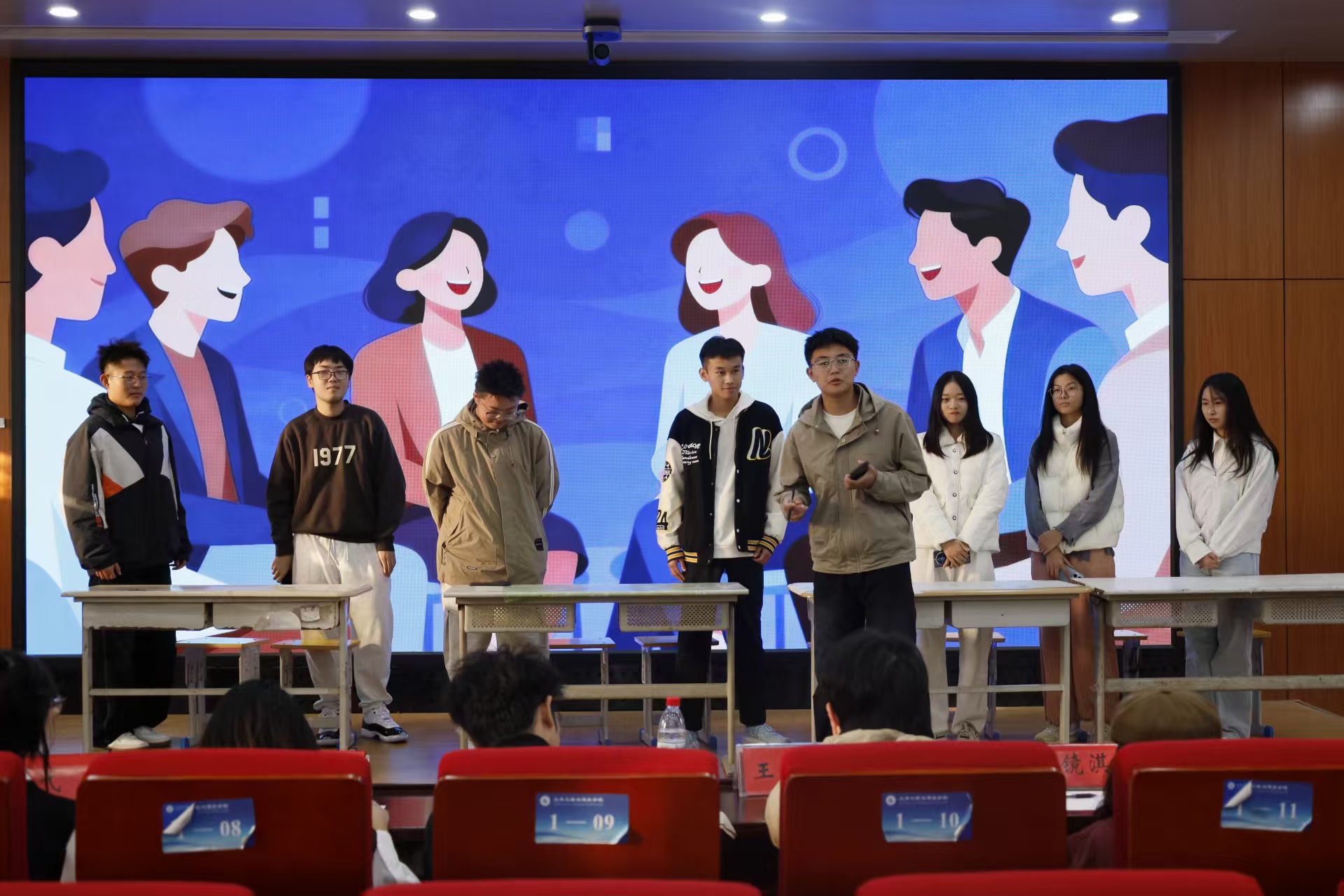 此次比赛分A、B两组进行,分别于下午和晚上两个时段展开角逐。各参赛队伍的表演形式丰富多元,创意十足。有的剧目以幽默诙谐的小品形式,演绎了宿舍成员从摩擦不断到相互理解的暖心过程;有的则通过感情真挚的话剧来展现学子在挫折中重新认识自我、接纳自我的心路历程。剧情推进中,他们通过细腻的神态、真挚的台词与自然的肢体语言,展现角色从困惑到释然、从迷茫到坚定的心路历程,所传递的积极解决方法既实用又具感染力。各参赛队伍都将饱满的热情投入表演,将大学生活中常见的学业压力、人际交往困惑、自我认知迷茫等心理冲突生动呈现。现场秩序井然,参赛选手们相互配合、默契十足,充分展现了良好的团队协作能力与创新精神,每一个作品都凝聚着班级的智慧与汗水。