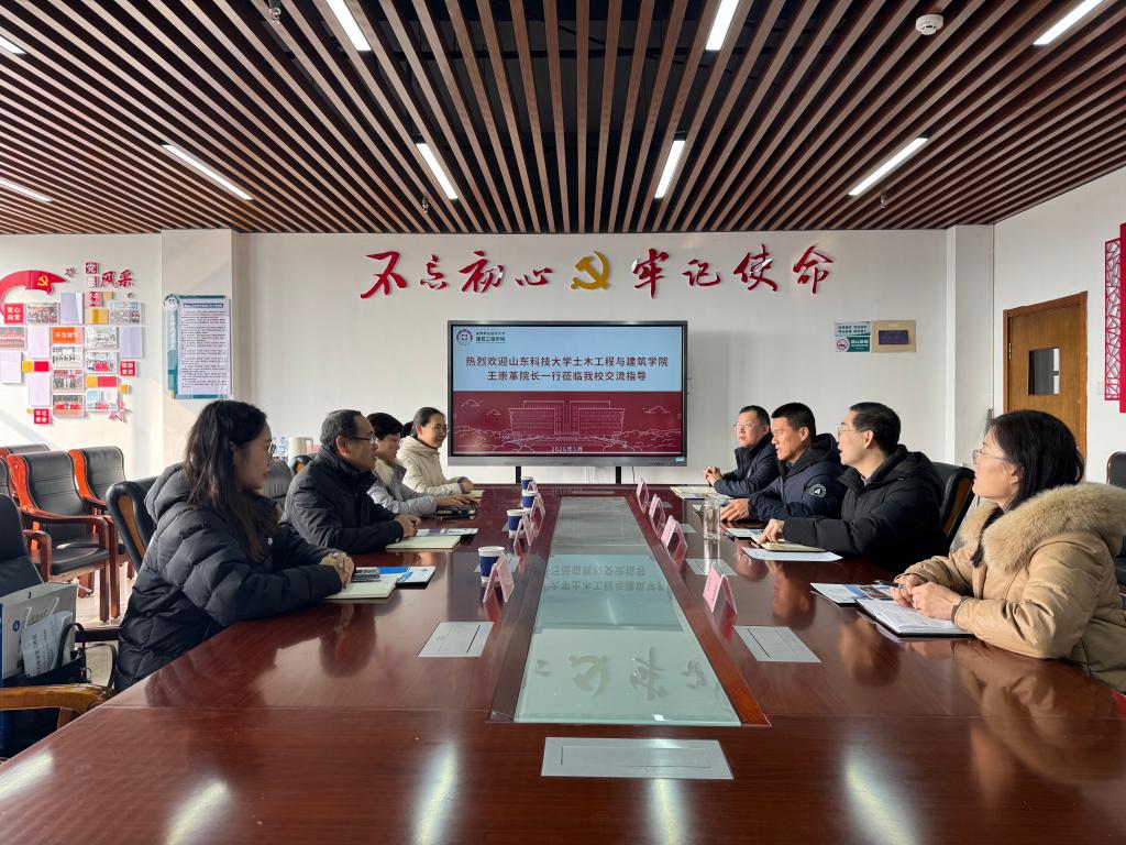 在淄博职业技术大学,建筑工程学院院长张骞等人对学院一行表示欢迎。座谈会上,双方围绕人才培养、就业实习、产学研合作等内容深入交流探讨。张骞详细介绍了淄博职业技术大学建工学院的专业建设成果、人才需求情况以及招录标准和核心技能要求。王崇革从专业设置、人才培养、实践教学及毕业生基本情况等方面介绍了学院发展概况,他表示,希望以此次走访为契机,加强两校在土建专业人才培养、就业资源共享等方面的交流合作,实现协同发展。