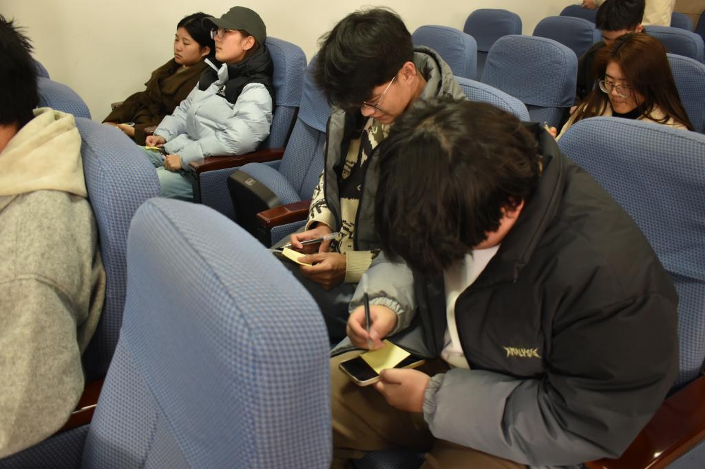 活动过程中,同学们集中观看了反诈主题微电影《心防—重生之我在大学干反诈》。影片以真实校园诈骗案例为蓝本,创新采用“重生”叙事视角,生动还原刷单反诈、网络交友、冒充公检法、虚假交易等大学生高发诈骗套路,讲述主角从受害者蜕变为反诈宣传员的历程。观影过程中,同学们全神贯注,深刻体会到电信网络诈骗的欺骗性。安全教育片《暗流涌动》及宣传片《笼中鸟》则以纪实镜头揭露诈骗产业链条,剖析诈骗分子精准围猎学生群体的底层逻辑,让在场学生直观认识到诈骗就在身边,进一步强化“识诈、防诈、拒诈”的觉悟。随后,标语征集活动火热展开,大家积极响应、踊跃参与,用笔墨传递反诈心声。征集到的标语创意十足、亮点纷呈,既有简洁的“反诈无小事,警惕在日常”,也有具有很强针对性的“要钱我不给,给钱我不要”。这些标语不仅展现了同学们的智慧与创意,更传递出共同防范诈骗的坚定决心。