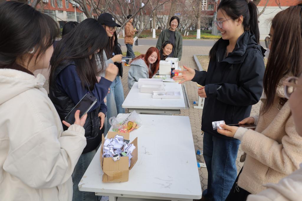活动现场设置了三个轻松有趣的互动环节,将心理调适巧妙融入春日氛围之中。在“心事投递”环节,同学们将内心的烦恼与困惑写在便签上,通过随机抽取他人写下的暖心回应,在真诚的文字交流中获得理解与启发,实现情绪的疏导与共鸣。“寄给未来的自己”明信片慢递环节则鼓励同学们写下自己的心愿与期许,通过文字梳理情绪、寄托希望,在温暖明媚的春日里收获一份前行的力量。此外,趣味猜拳游戏以轻松愉快的方式拉近了同学们之间的距离,大家在一来一往的互动中释放压力、增进交流,现场气氛热烈融洽。