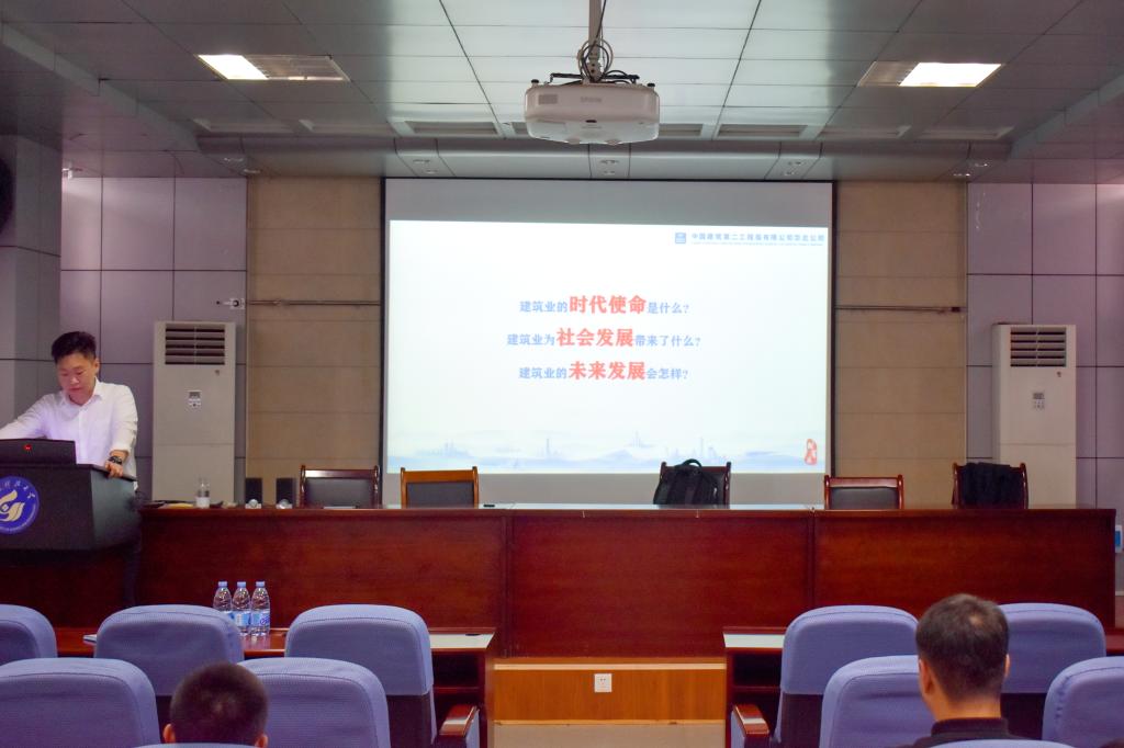 宣讲会上,中建二局华北公司代表李子辰首先介绍了建筑行业的发展,市场需求和行业前景,以及公司的发展历程、业务领域、项目实施情况等方面的内容,通过生动的案例和丰富的资料,向学生展示了企业的规模、技术实力和市场竞争优势。同时,公司代表还重点详细讲解了岗位职责、薪资待遇、人才培养机制等方面的信息,为即将步入社会的土建学子提供了发展的指引和选择的参考。