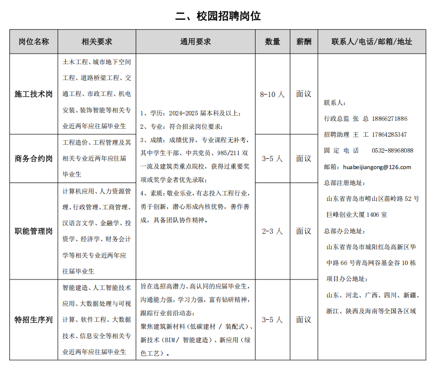 二、校园招聘岗位