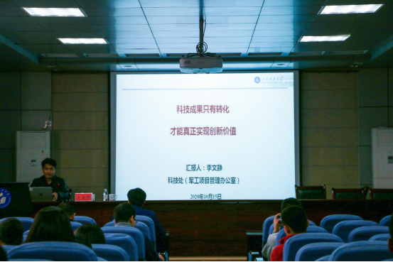 李文静从科技成果转移转化的国家政策导向入手强调科技成果转化的重要性,从专利、技术成果、时代背景等方面分析指出国家政策的转变是为了激发人们科技成果转化的动力。李文静介绍了我校现行科技成果转移转化的政策成果转化与科技成果转化业务办理流程,并着重讲解了转移转化政策、创新创业政策、现金奖励政策和激励政策。最后,李文静对我校科研人员职务科技成果所有权、长期使用权和科技成果转化人激励机制等进行对比,对学院相关业务实施办法和教师发展提出建议。