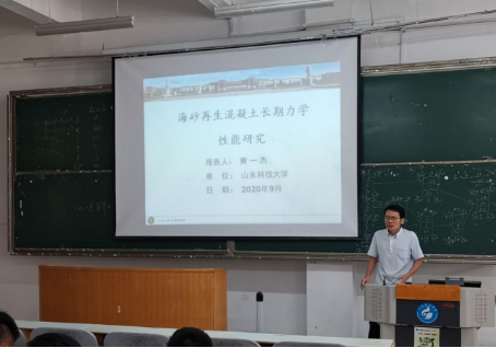 9月1日,beat365在线唯一官网博士生导师黄一杰副教授做了题为“新型海洋材料混凝土性能”的报告。报告中,黄一杰介绍了“海洋强国”战略背景下土木工程材料涉海的新方向和新趋势,并结合自身的研究成果,介绍了“海砂再生混凝土”和“海砂珊瑚混凝土”两种新材料的力学性能及应用前景。