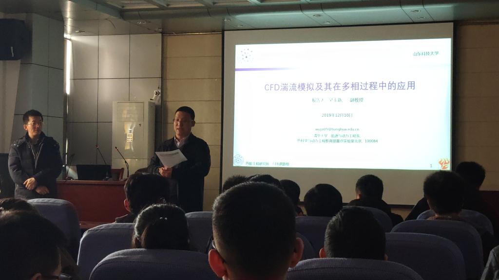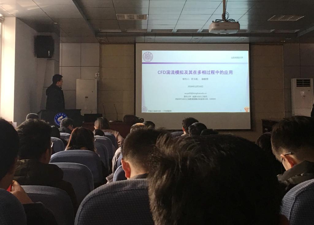 吴玉新博士介绍了CFD的基本原理及湍流建模方法,进一步就多相湍流燃烧及传热过程的数值建模、实验验证及先进的测试手段详细介绍;通过对七个典型算例的分析,如煤粉在复杂结构燃烧器中的扩散行为、煤粉撞击及其对分离特性的影响、煤粉射流火焰、煤粉燃烧过程中的NOx生成、富氧煤粉锅炉内的燃烧及传热特性、超临界工质的传热特性、管内汽液两相流动的汽泡行为等,将复杂深奥的燃烧、流动及传热问题,直观清晰的呈现出来,令在座师生对CFD方法在湍流多相流过程中的应用有了深入理解。