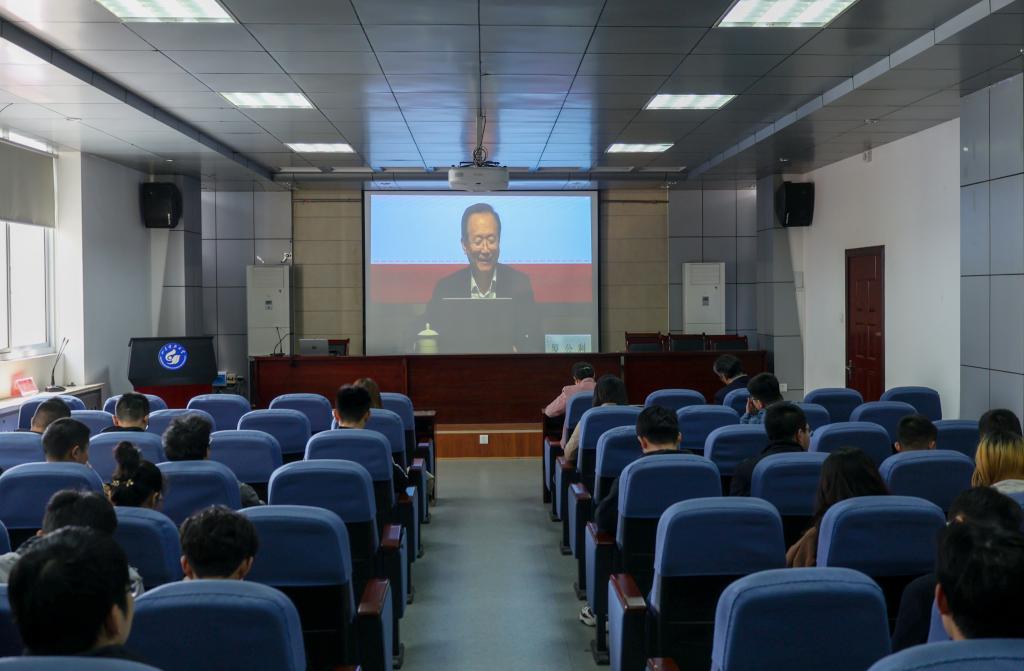 为了深入贯彻落实习近平总书记关于深入学习党史、新中国史、改革开放史、社会主义发展史的重要指示精神,深化思想政治理论课改革创新,以实际行动迎接建党100周年,4月15日14时,beat365在线唯一官网党委书记罗公利于逸夫讲堂以“重温百年党史,见证青岛百年”为题,为青年学生讲授百年党史。beat365在线唯一官网在J15-219设立分会场,beat365在线唯一官网党委副书记兼副院长高静、学生工作办公室全体专兼职辅导员及学生代表观看直播、参与线上学习。