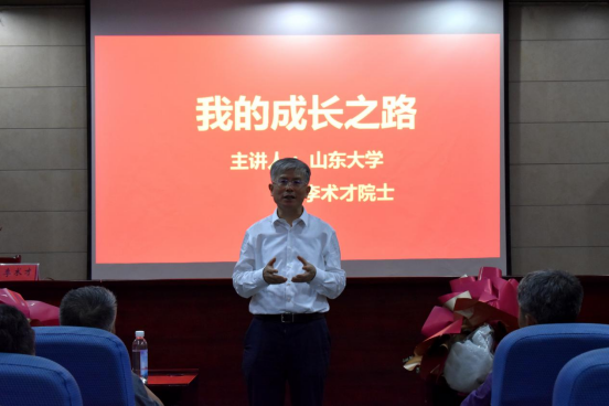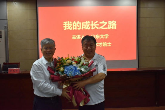 立德树人不忘初心,尊师重教薪火相传。讲座伊始,李术才院士专门准备了献花环节,并亲手为恩师们奉上精心准备的鲜花,表达了对恩师们谆谆教诲和辛勤付出的感激之情。学院老教师们在惊喜之余感动不已,老教师代表姜云臣、王渭明、吕爱钟、王来等饱含感情的讲述了李术才院士求学路上的优秀事迹和逸闻趣事,浓浓的师生情充满了整个会场、感染了在座师生。