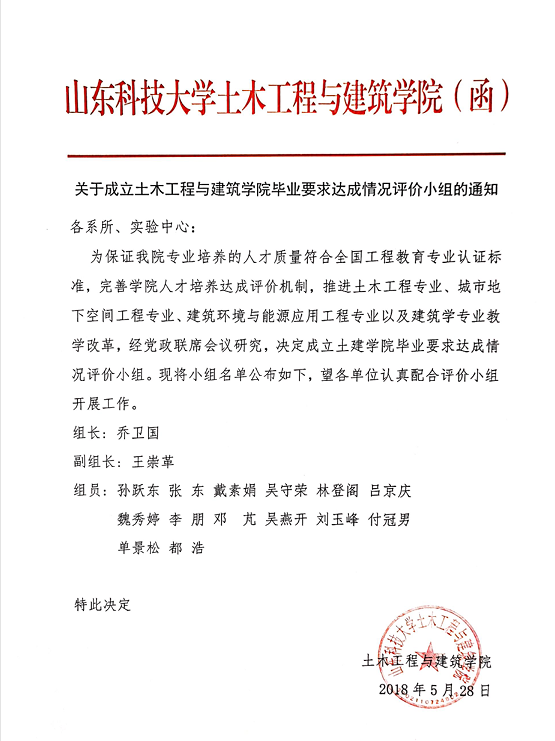 关于成立beat365在线唯一官网毕业要求达成情况评价小组的通知