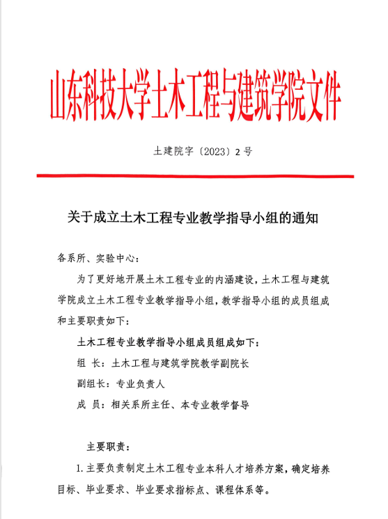 关于成立土木工程专业教学指导小组的通知